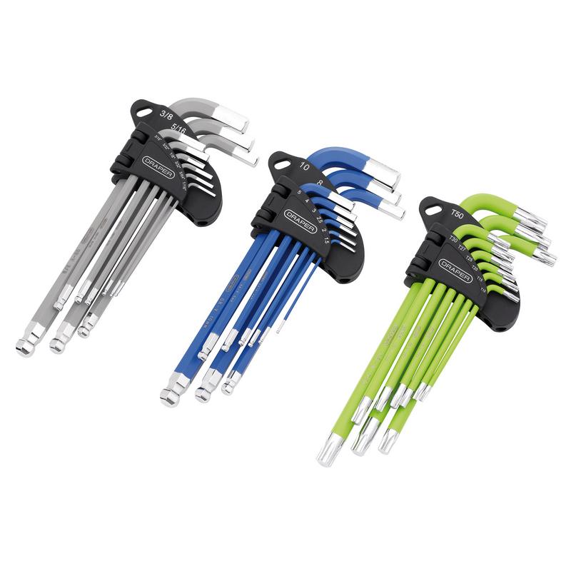 This is a triple set offering a range of metric and imperial ball-end hex keys and Draper TX-STAR keys.