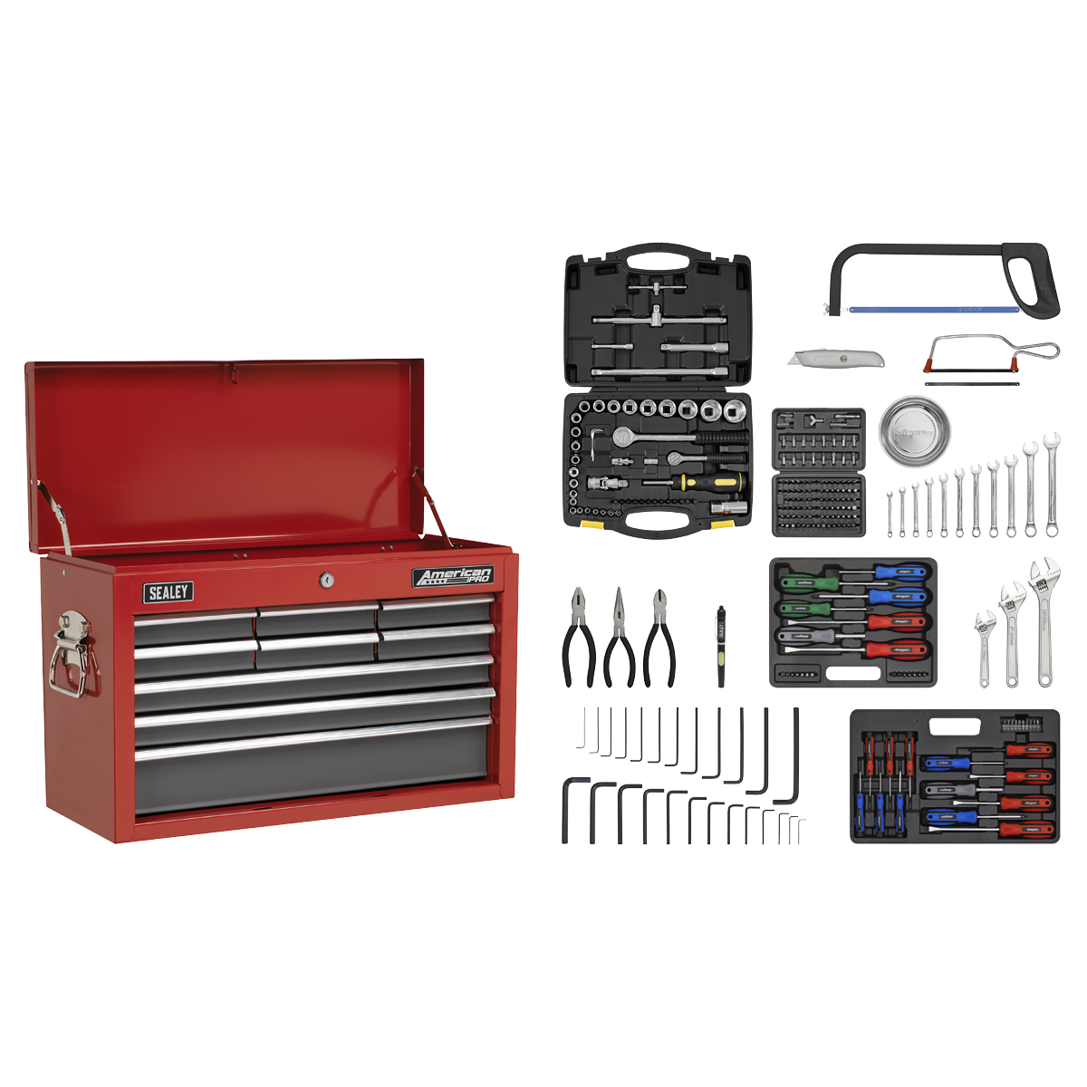 Sealey American PRO® Topchest 9 Drawer with 205pc Tool Kit - Red/Grey AP22509BBCOMB